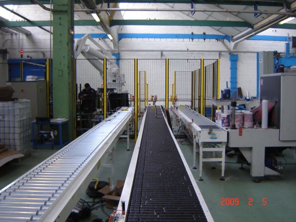 Livraison et mise en service d'une de nos premières machines. Palettisation de pots de peinture multiligne avec suivi de production par Tags RFID